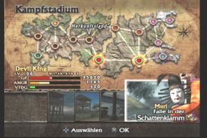 Auch wenn Capcom den Protagonisten in Devil Kings nur Fantasienamen und fiktive Schlachtfelder spendierte, wird schnell klar, dass man sich wie in Koeis Samurai Warriors mit historischen Figuren durchs feudale Japan Ende des 16. Jahrhunderts schnetzelt. So schlüpft ihr in die Rollen bekannter Feldherren wie Nobunaga Oda (Devil King) oder Shingen Takeda (Red Minotaur), um am Ende das gesamte Land zu beherrschen . Dazu wählt ihr auf einer von verschiedenen Clans besetzten Landkarte rundenweise Territorien aus, die ihr dann in actionreichen Echtzeitgeplänkeln zu unterwerfen versucht. Klingt ein bisschen wie Dynasty Warriors: Empires, aber taktische Planung ist kaum nötig, da jeder gescheiterte Angriff das sofortige Spielende bedeutet und die Kampagne erst beendet ist, wenn alle Ländereien erobert wurden. Es ist also egal, wann ihr wo angreift, denn am Ende wirkt sich euer Vorgehen maximal auf die Gesamtanzahl der zu absolvierenden Schlachten aus.