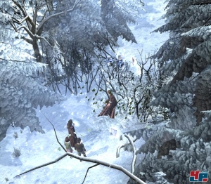 Ihr schlagt euch durch tiefe schneebedeckte Wälder oder geht auf Zehenspitzen über zugefrorene Seen, während ihr die matten Spiegelungen auf dem nur teilweise lichtdurchlässigen Eis bestaunt – die Kulisse ist grandios! Ein leichter Dämpfer erwartet euch lediglich dann, wenn die Kamera nah an die Akteure heran fährt, da in diesen Momenten künstlich wirkende Figuren mit Plastiklook im Fokus stehen. Aus der Ferne betrachtet fällt dies allerdings nicht auf, zumal die Animateure sämtliche Charaktere glaubwürdig in Szene gesetzt haben. Spätestens dann, wenn das Eis in Narnia langsam taut und die Armeen der Weißen Hexe Bildschirm füllend aufmarschieren, genießt ihr eine der schönsten Versoftungen dieser Tage.