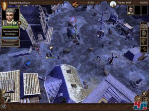rechts ist die Gebäude-Liste, oben rechts ist ein kleines Fenster mit den drei steuerbaren Charakteren. Oben links ist das Porträt der gesteuerten Figur (ich meine, da konnte man dann, wie bei der Gebäude-Liste, Untermenüs aufrufen...bin mir aber nicht sicher, schon verdrängt).