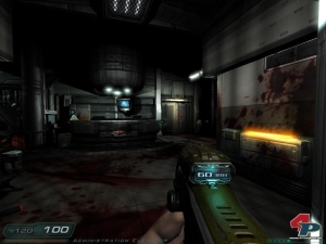 Vorgegeben durch das Szenario stolpert ihr hauptsächlich durch Innenlevels. Die versprühen einen klaustrophobischen Charme; finstere, metallisch glänzende Labore, in Dämmerlicht getauchte Aufenthaltsräume, sterile Gänge und sonstige technische Einrichtungen mit teils wunderschönen Maschinen prägen das Bild. Typisches Sci-Fi-Techno-Equipment mit Computern, blinkenden Apparaturen und wild verlegten Kabeln erinnern vom Szenario her an James Camerons Kinoklassiker „Aliens“. Ganz selten dürft ihr den beengenden, abwechslungslosen Stahlsarg verlassen und euch den Mars mit eigenen Augen anschauen. Wahnsinnig viel seht ihr da jedoch nicht, da euer Sauerstoff nur 60 Sekunden reicht und gerade ein mächtiger Sturm auf dem Planeten tobt – später erwartet euch noch ein grandioser Trip in das Baller-Paradies „Hölle“.