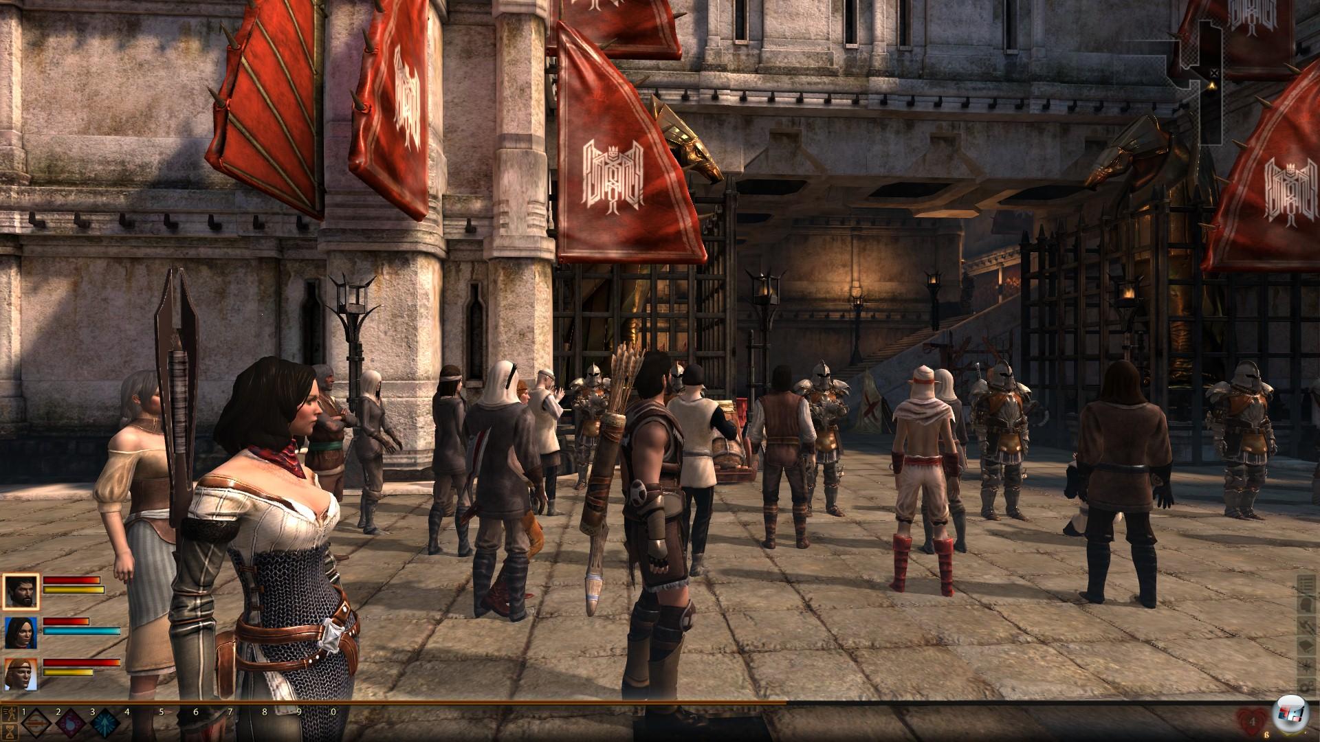 Warum gehen sie nicht wenigstens vor Angst in die Knie? Warum rennen sie nicht weg? BioWare lässt seine Spielwelt abseits der sehr emotionalen Hauptfiguren zu einer kalten Bühne für Kämpfe verkommen, anstatt Kirkwall wirklich interessant und lebendig zu gestalten. Das Figurenverhalten ist teilweise so inkonsequent, dass selbst NPCs mitten in Kämpfen stehen, die eigentlich um ihr Leben fürchten müssten – erst wenn das Gefecht vorbei ist, machen sie einen auf Angst und Panik. Das ist einfach inkonsequent. Und das ist kein Fortschritt gegenüber Dragon Age.