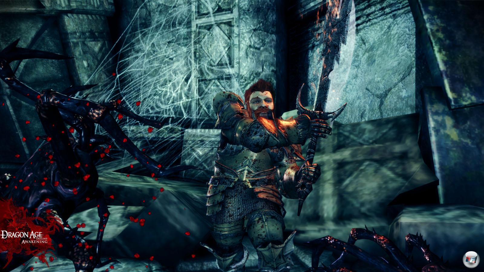 BioWare verändert zwar nichts an der Spielmechanik, aber sie bleiben ihrem epischen Anspruch treu und holen richtig weit aus, um die Geschichte von Ferelden mit einem Epilog von knapp 15 bis 20 Stunden weiter zu erzählen – je nach Spielweise kann man da ein paar Stunden abziehen; vor allem, wenn man einen starken Charakter importiert. Zu Beginn wird erstmals die Neugier geweckt, als man einer sprechenden Kreatur der Dunklen Brut begegnet: Dieser so genannte „Verzehrte“ ist zwar fast genau so hässlich wie seine gutturalen Brüder, aber er scheint tatsächlich intelligent zu sein – man fühlt sich fast ein wenig an die Turianer aus Mass Effect <a class="DYNLINK" onmouseover="DynToolTipp_Show('Klicken für Gameinfos‚)“ onmouseout=“DynToolTipp_Hide(); “ href=“javascript:DynCont_Display(‚Gamefinder‘,’runmod.php?sid=%7BSID%7D&LAYOUT=dyncont_gf&spielid=15768′)“> erinnert. Und noch etwas ist seltsam: Er und all seine Schergen müssen gewusst haben, dass sich in der Festung auch Graue Wächter aufhalten. Warum hat man sie dann angegriffen? Wie kam man überhaupt hinein?