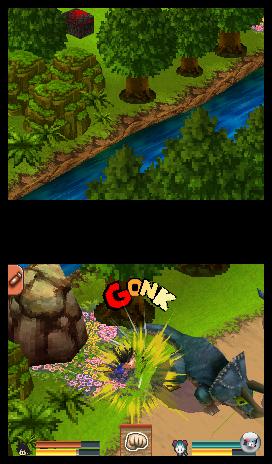 Seid ihr hingegen allein unterwegs, müsst ihr nicht den genervten Babysitter spielen, bekommt aber trotzdem immer wieder Energieauffrischungen serviert, die nur für Bulma gelten, obwohl diese doch gar nicht mit von der Partie ist. Da der Schwierigkeitsgrad vorwiegend harmlos ist, ist das zwar meist nicht weiter tragisch, trotzdem hätten sich die Entwickler in diesen nicht gerade seltenen Abschnitten solch sinnlose Beutestücke schenken und ausschließlich für Goku verwendbare Extras spendieren können. Auch die Kamera hätte ruhig etwas flexibler sein können. Zwar werden beide Bildschirme zur Darstellung genutzt, aber das eigentliche Geschehen spielt sich komplett auf dem Touchscreen ab, dessen nicht zoombarer Bildausschnitt sich nur minimal verschieben lässt. Während ihr nach oben weit voraus schauen könnt, seid ihr in die anderen Richtungen quasi völlig blind und überseht mitunter Schätze, Schalter, Gegner oder Fallen.