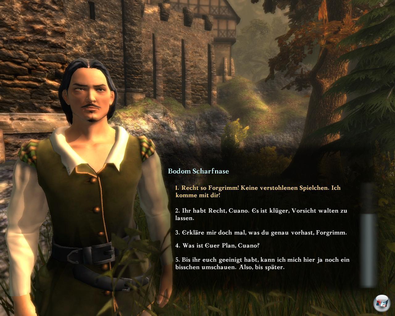 z.B. wie Katz und Maus, es gibt auch kleine Geschichten in den Biografien. Aber diese Interaktion nimmt keine lebendige Formen wie bei Baldur’s Gate oder Dragon Age: Origins <a class="DYNLINK" onmouseover="DynToolTipp_Show('Klicken für Gameinfos‚)“ onmouseout=“DynToolTipp_Hide(); “ href=“javascript:DynCont_Display(‚Gamefinder‘,’runmod.php?sid=%7BSID%7D&LAYOUT=dyncont_gf&spielid=5552′)“> an, wo sich Partymitglieder beklagen, wenn man ihre Probleme nicht angeht. Die Zickereien und Gespräche in der eigenen Gruppe sind hier eher ein statischer Zusatz als ein dynamischer Hort von Konflikten und Loyalitäten. So kommt es nur selten vor, dass man mal aktiv den Vermittler spielen muss. Und wenn man sich gar nicht kümmert? Dann hat es keine Konsequenz für den Zusammenhalt der Gruppe – schade.