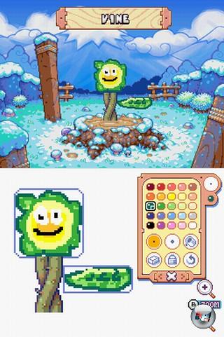 Neben dem Helden gibt es noch viele andere Spielteile zu pinseln: Sprungfedern, Reben, U-Boote – all diese Elemente werden danach wie ganz normale Levelbausteine benutzt, die Ränder sind klar definiert. Auch wenn ihr also über keinerlei zeichnerisches Talent verfügt, könnt ihr Drawn to Life ganz normal spielen. Im Adventure-Teil habt ihr nicht viel zu tun, im Gegensatz zum Jump-n-Run: Laufen, springen, Münzen sammeln, eingekerkerte Figuren befreien, herausgerissene Seiten aus DEM BUCH aufsammeln, Gegner entweder per gut gezieltem Kopfhopser oder Schuss aus der Schneekanone erledigen – und »Schattenschmiere« entfernen. Das sind schwarze Flecken in der Landschaft, die ihr