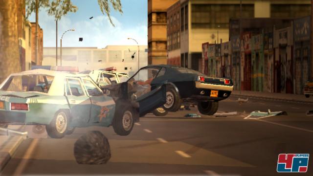 der Fahrt ständig auf die große Karte um oder wünscht euch einen großen Navigationspfeil auf dem Spielbildschirm, wie man ihn bei ähnlichen Titeln wie L.A. Rush findet und der auch hier sicher von Vorteil gewesen wäre. Zu der enormen Anzahl an Unfällen trägt außerdem die etwas schwammige Steuerung bei, die nicht voll auf Arcade ausgelegt ist, sondern euch einiges an Können hinter dem Steuer abverlangt. Lenkt ihr zu stark in eine Kurve, brechen die Boliden sofort aus, weshalb Ausweichmanöver durch den Verkehr meist in einem Crash enden. Da die Vehikel über ein mehrstufiges Schadensmodell verfügen, bleiben nach zu vielen Kollisionen nur noch fahruntüchtige Wracks übrig, in denen ihr besser nicht mehr sitzen solltet, wenn der Motor explodiert. Schnappt euch dann einfach ein neues Fahrzeug, indem ihr frech einen beliebigen Flitzer vom Straßenrand klaut oder sogar Fahrer aus ihren eigenen Autos schmeißt, um euch mit den Boliden aus dem Staub zu machen. Egal ob Müllwagen, Bus, Sportwagen, Motorrad oder Cabriolet: in Parallel Lines könnt ihr alles klauen und steuern, was irgendwie fährt – und jede Vehikel-Klasse vermittelt ein individuelles Fahrgefühl. Lasst euch beim Fahrzeugklau allerdings nicht von den aufmerksamen Cops erwischen, die schnell die Verfolgung aufnehmen, sich aber auch ebenso schnell wieder in Seitengassen abschütteln lassen. So lange sie euer Gesicht nicht sehen, jagen sie zudem nur den Wagen, so dass ihr diesen schnell irgendwo abstellen und danach in aller Ruhe an den herannahenden Cops vorbeigehen könnt.