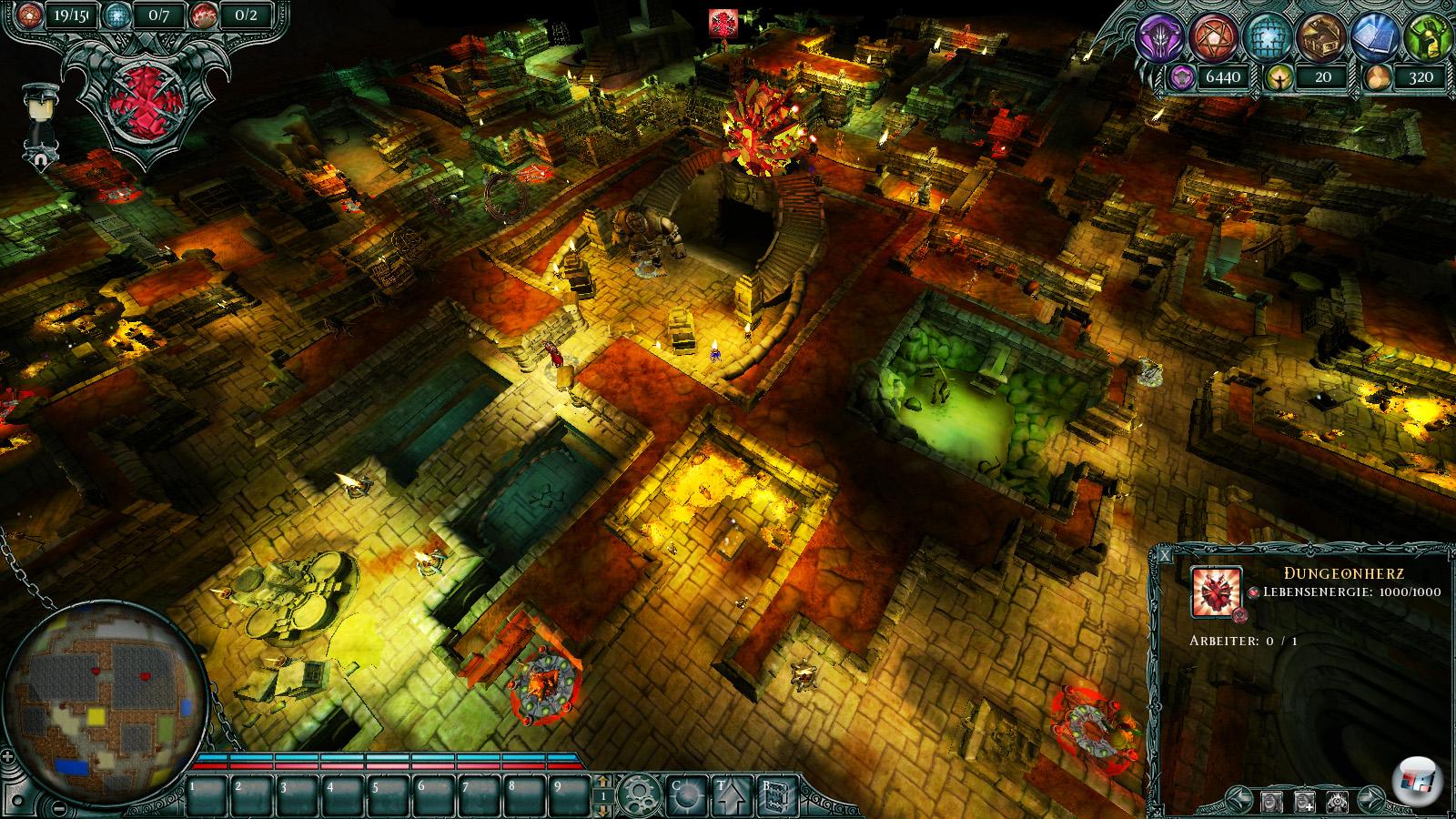 …ist es aber nicht. Denn in diesen Gemäuern des Jahres 2011 weht ein ganz anderer Geist als in jenen von 1997. Was unter der Feder von Peter Molyneux von Beginn an für kreatives Bauen, Basteln und Schadenfreude zwischen Feen, Fallen und Folterkellern sorgte, ernüchtert hier schon im Einstieg: Der bemühte Humor zündet etwa zwei Klassen tiefer als im wirklich süffisanten Overlord <A class=DYNLINK onmouseover="DynToolTipp_Show('Klicken für Gameinfos‚)“ onmouseout=“DynToolTipp_Hide(); “ href=“javascript:DynCont_Display(‚Gamefinder‘,’runmod.php?sid={SID}&LAYOUT=dyncont_gf&spielid=9703′)“> und dürfte höchstens Kindern ohne Terry Pratchett-Bildung ein Grinsen entlocken – von bösem Sarkasmus ist nur selten eine Spur. Man fragt sich auch: Warum zur Hölle versucht man dem Herren des unterirdischen Bösen nicht etwas Charisma in Form von Fratze und Gelächter zu geben? Der Protagonist bleibt ein anonymer (unheimlich schlecht designter) Helmträger. Und schon der erste Auftrag, bei dem man einfach für eine bestimmte Seelenzahl höllisches Grünzeug, Gargoyleköpfe oder Knochenleuchter irgendwo an den Wänden eines bereits bestehenden Labyrinths anbringen soll, offenbart weitere Defizite dieses Spiels.