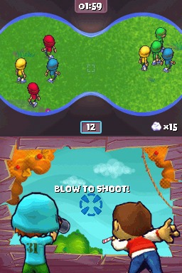 | Fies: Mit Papierkügelchen schießt ihr auf andere Kinder. Dazu pustet ihr einfach ins Mikro eures DS oder drückt alternativ eine der Schultertasten. |