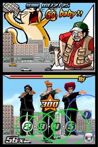 größtenteils kompetente Coverversionen – nur gelegentlich (wie bei Avril Lavignes »Sk8er Boi«) geht’s mit der Qualität hörbar nach unten. Während ihr den Touchscreen rockt, legen die Polygonagenten einen heißen tanz auf den Bildschirm, oben kommt noch die sich entfaltende Geschichte dazu – zuviel, um alles gleichzeitig mitzubekommen. Genau dafür gibt es am Levelende ein komplettes Replay, das ihr darüber hinaus speichern dürft. Besitzt ihr das Rumble Pak, könnt ihr es auch in EBA nutzen – allerdings ist der praktische Nutzen, wie immer, sehr begrenzt bis nicht vorhanden.