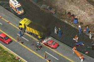 | Mini-Missions-Ablauf: Auto löschen, Verletzte behandeln, danach das Auto aufbrechen und die Insassen rausholen. |