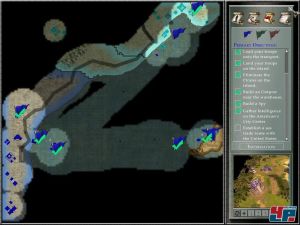 | Die Übersichtskarte für Missionsziele, Arbeitsmanagement und Schlachtplanung. |