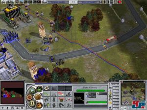 Trotzdem ist die Kulisse ansehnlich. Wer Empire Earth 2 zum ersten Mal sieht, ist beeindruckt von seiner professionellen Aufmachung: Stilvoll gestaltete Menüs, schmissige Intros in Spielgrafik, Sprachausgabe, viele Geräusche und ein bombastischer Sound sorgen gehörig für Stimmung. Doch wenn ihr es dann spielt, fängt der Putz an zu bröckeln. Zwar gibt es eine nützliche Bild im Bild-Funktion, und die Darstellung ist zoombar bis ganz nah ans Geschehen, aber die Einheitenmodelle sowie Animationen wirken dann aber eher ungelenk. Bisweilen sieht es so aus, als würden Reiter durch die Szenerie schlittern. Obwohl jedes Volk sein eigenes Design besitzt, sehen auch viele Gebäude unförmig aus. Wettereffekte wie starker Schnee sind zwar eine gute Idee, aber nicht wirklich gelungen. Auch die Darstellung der Gischt und des Wassers ist nicht vollends überzeugend, da die Spiegelung sehr blass wirkt. Unrealistisch, und fast schon dämlich, sehen die übergroßen Anführer aus, die wie Riesen alles überragen.