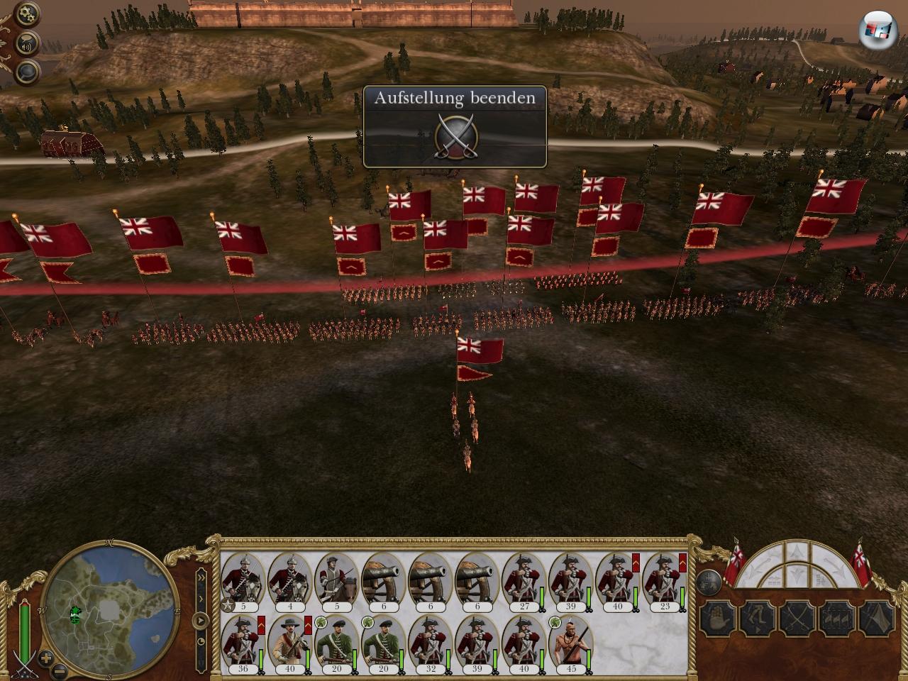 | Vor der Schlacht habt ihr genügend Zeit, eure Truppen klug aufzustellen. Dabei sollte die Landschaft mit ihren Höhen und Deckungen mit einbezogen werden. |