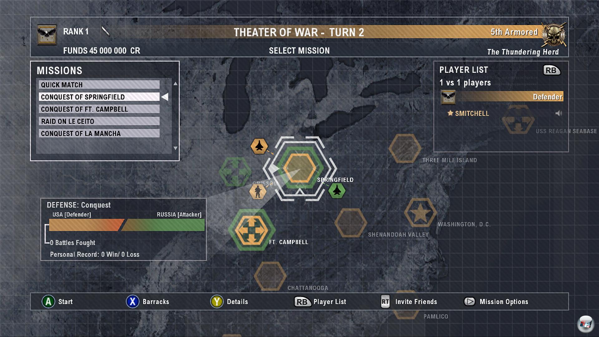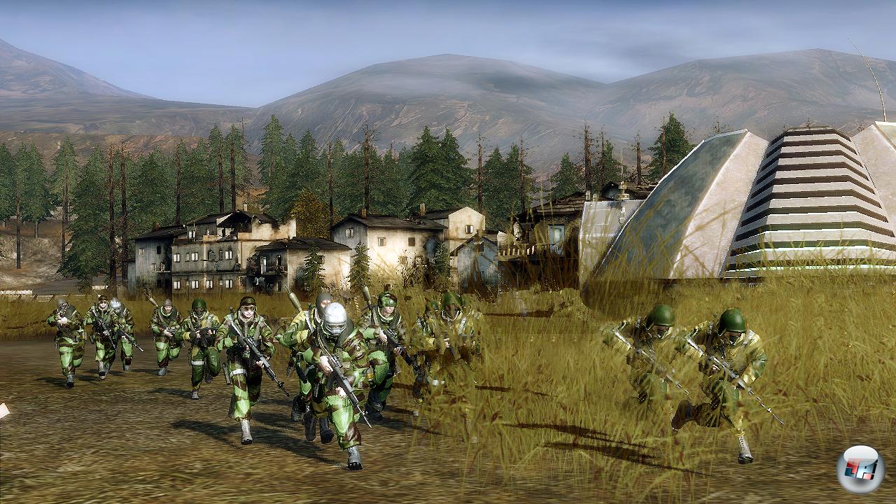 Viel wichtiger ist: Ihr müsst als Anführer mit Befehlsgewalt die Kohlen aus dem Feuer holen und in Krisengebieten in den vier Missionstypen Eroberung (Hälfte der Radarstationen sichern), Sturmangriff (alle Feinde vernichten), Sabotage (Hälfte der Gebäude vernichten) und Belagerung (Radarstation erobern und halten) kämpfen – allerdings nur auf der Nordhalbkugel der Erde, denn Südamerika, Afrika, Südostasien und Ozeanien spielen im Dritten Weltkrieg scheinbar keine geostrategische Rolle; ob da schon ein Add-On geplant ist?