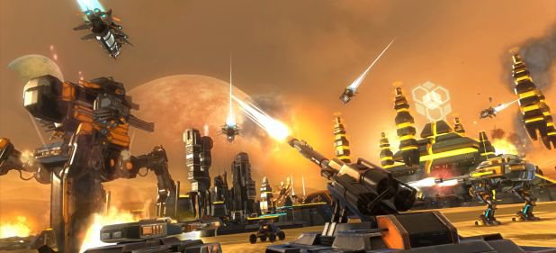 Frei platzieren darf man im Startsektor ohnehin nur drei oder vier Verteidigungstürme – je nach Fraktion. Einheiten werden nicht direkt im Kriegsgebiet gebaut, sondern relativ umständlich aus dem Orbit angefordert. Umständlich, weil man zunächst aus dem verschachtelten Menü die Einheit auswählen und dann die Landeposition auf der Karte manuell festlegen muss.