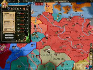 Der Handel läuft im Wesentlichen automatisch ab, so dass ihr die Waren nicht durch die Gegend schippern müsst. Es gibt unterschiedlich wertvolle Waren wie Getreide, Wolle, Eisen, Baumwolle, Zucker oder Gewürze, von denen es nur eine pro Provinz gibt. Entgegen der political correctness, aber zugunsten der Authentizität, dürft ihr sogar Sklaven verkaufen, die es aber nur in Afrika gibt. Ihr schickt eure Kaufleute los, die sich auf den Weltmärkten breit machen – vorzugsweise in Europa. So erhaltet ihr euren Anteil am Handelsvolumen der jeweiligen Handelsstadt. Ein Monopol erhaltet ihr, indem ihr den Handel in einem Ort mit euren Kaufleuten dominiert.