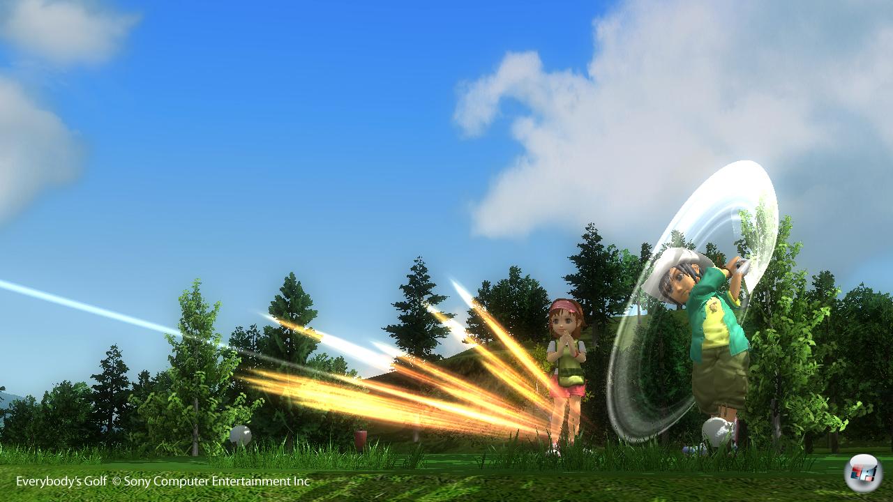 Dabei war das alte System nicht nur in Everybody’s Golf (Minna no Golf in Japan bzw. Hot Shots Golf in Nordamerika) längst bekannt: Ein Tastendruck und die Kraftanzeige schnellt nach oben, ein zweiter und man bestimmt die Stärke des Schusses, ein dritter im richtigen Augenblick und der Ball fliegt auch dorthin, wo man ihn haben will. Das gibt’s nicht nur in Fernost; auch Links, Tiger Woods PGA Tour oder wie sie alle heißen boten stets eine so genannte Drei-Klick-Steuerung. Tatsächlich imitierten die Japaner vor zehn Jahren lediglich den bewährten Mechanismus für ihren damaligen Golf-Einstieg und haben seither dran festgehalten. Doch der erste PS3-Auftritt der