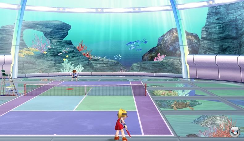 | Ausgefallene Tennisplätze: Auf den Spielfluss hat es wenig Einfluss, aber fürs Auge gibt es in Everybody’s Tennis jede Menge zu entdecken! |