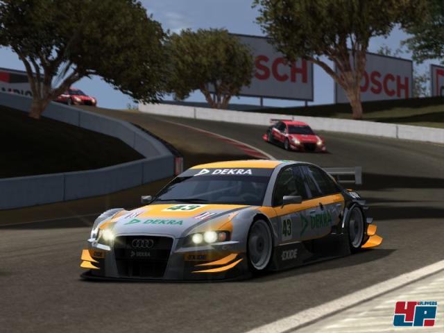 Der Rest sieht genau so aus wie SCAR. Mehr braucht man dazu eigentlich nicht zu sagen. Nicht nur, dass die Entwickler viele der Strecken wie Valencia, Hockenheim, Donington oder Mailand direkt aus dem Vorgänger übernommen haben. Nein, sie sehen auch noch genau so aus wie im Alfa Romeo-Racer. Hier wurde anscheinend nicht mal der Versuch unternommen, die Kulissen grafisch etwas aufzupeppen oder mit Objekten lebendiger zu gestalten, anstatt erneut nur regungslose Pappkameraden auf die Tribünen zu setzen. Auch die Fahrzeuge haben ihren leicht comichaften Look behalten, doch gibt es jetzt neben einigen Alfas auch Autos anderer Hersteller wie Opel, Audi, VW, Chevrolet, Mercedes oder TVR zu bestaunen. Diese Art der Darstellung ist natürlich Geschmackssache, doch haben mir die Fahrzeugmodelle insgesamt gut gefallen, auch wenn manche Spiegelungen etwas zu übertrieben und unecht wirken. Vollkommen daneben ist jedoch das Schadensmodell, das fast schon einen geskripteten Eindruck hinterlässt und alles andere als dynamisch wirkt. Jeder Schaden sieht irgendwie gleich aus: Fährt man einem Gegner ins Heck, hängt die Stoßstange genau so herunter wie bei dem Wagen, mit dem man zwei Minuten zuvor kollidiert ist. Doch selbst wenn es zu keiner einzigen Berührung mit einem anderen Fahrzeug oder der Leitplanke kommt, könnt ihr euch doch noch einen Totalschaden einfahren. Wie das? Indem ihr von der Strecke abkommt! Es ist schon irgendwie seltsam, dass ihr für eine Abkürzung so viel Schaden angerechnet bekommt wie bei einem Unfall – vor allem, weil ihr diese meist nur als Notlösung nutzt oder wenn euch mal wieder einer der KI-Fahrer von der Strecke gerammt hat.