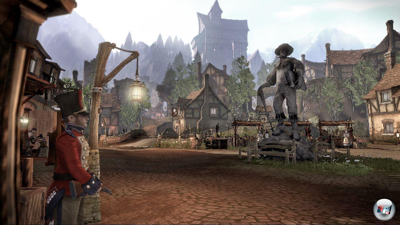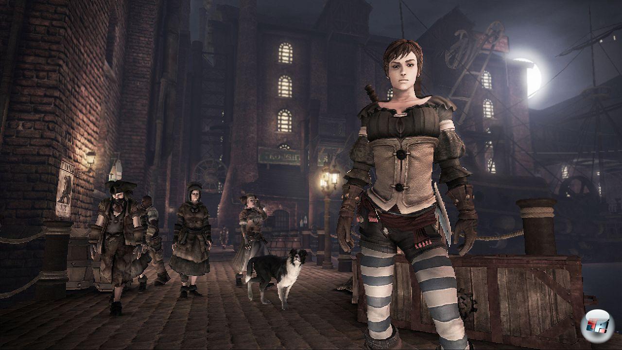 Dass dabei die Bildrate immer mal wieder versucht, die tolerierbare Untergrenze auszuloten, aber niemals unter einen akzeptablen Bereich gefällt, ist dabei leicht zu verschmerzen. Auch die Pop-Ups in einiger Entfernung, gelegentliche Fade-Ins sowie Roll-Rasen, der vor allem beim Sprinten in etwa 15 bis 20 Meter vor dem Helden die Wiese bedeckt, nimmt man wahr, schiebt sie aber angesichts der Sichtweite und der Idylle beinahe gleichgültig beiseite. Die Figuren, denen man begegnet, reihen sich ebenfalls gut ins Bild ein: Sie wurden liebevoll gestaltet, könnten zwar häufig hinsichtlich der etwas platten Gesichter eineiige Zwillinge sein, weisen aber dafür ein breit gefächertes Kleidungsrepertoire vor, das keinen Zweifel über ihren gesellschaftlichen Stand offenlässt. Adlige wandeln mit Pomp-Kleidern und Rüschen ohne Ende durch die Straßen, während Bettler mit zerrissenen und verdreckten Klamotten im Industrieviertel ihr Überleben sichern wollen.