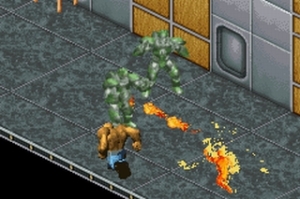Vier Mutanten sollt ihr sein Ein schöner Tag im Weltall – mit Ausnahme dieses bedrohlich wirkenden, immer näher kommenden Raumnebels, der aus Reed Richard, Sue Storm, Johnny Storm und Ben Grimm per unerklärlicher Mutation die Fantastischen Vier macht. Jeder hat jetzt spezielle Eigenschaften, die natürlich zum Menschheitswohl eingesetzt werden müssen: »Mr. Fantastic« ist jetzt gelenkiger als Mitglieder einer chinesischen Zirkusgruppe, die Lady kann sich unsichtbar machen, ihr Bruder fackelt nicht lang, sondern wirft lieber mit Feuerbällen um sich – und »Das Ding« ist ein laufender Steinbrocken mit ungeheuren Kräften. Zusammen treten sie sieben Levels lang gegen jede Menge Gegner und fünf Obermotze an, um schlussendlich dem größenwahnsinnigen Dr. Doom die ebenfalls mutierte Nase zu verbeulen. Spielerisch erwartet euch ein sehr klassisches Beat-em-up: Jede Figur hat ein paar Schlag- bzw. Kickvarianten, dazu kommen Spezial- und Team-Moves. Außerdem dürfen die Helden an speziellen Punkten Sonderaktionen zeigen – Reed kann z.B. in kleinen Geschicklichkeitseinlagen Computer hacken, während Ben größere Dinge kaputt machen darf. Ihr seid meist im Team unterwegs und dürft jederzeit zwischen den anwesenden Mitgliedern wechseln. Speziell für die Bosskämpfe ist das nützlich, außerdem müsst ihr gelegentlich zusammenarbeiten. Die KI-kontrollierten Rest-Vier kämpfen selbständig und durchaus kompetent weiter. Leider gibt es keinen Mehrspielermodus – hier hätte sich eigentlich eine Kooperativ-Variante angeboten. Das Ding am Mikrofon Die Grafik erinnert perspektivisch an Max Payne Advance: Aus der Iso-Sicht seht ihr schön animierte, aber recht farbarme Renderfigürchen, die durch eckige Räume traben. Bei erhöhtem Gegneraufkommen gerät die Optik leicht ins Stocken, dafür ist ein Teil der Umgebung zerstörbar. Leider hat die Perspektive den Nachteil, dass ein Ausrichten auf spezielle Feinde oder Gegenstände knifflig ist – u.U. rotiert man um das Ziel herum, während man selbst mit Schlägen eingedeckt wird. Die Musik trötet im Hintergrund dramatisch, aber schwachbrüstig vor sich her. Die Kämpfe werden von kratzigen Effekten und gelegentlichen Sprachsamples begleitet. |  | Fakten: – Buttonmasher-Spielprinzip – vier Sprachen wählbar – fünf Spielstände – automatisches Speichersystem – teilweise zerstörbare Umgebung – sieben Welten mit 40 Levels – 14 Standard-Feinde – fünf Bossgegner  | | Jede Figur hat eigene Spezialmanöver. |