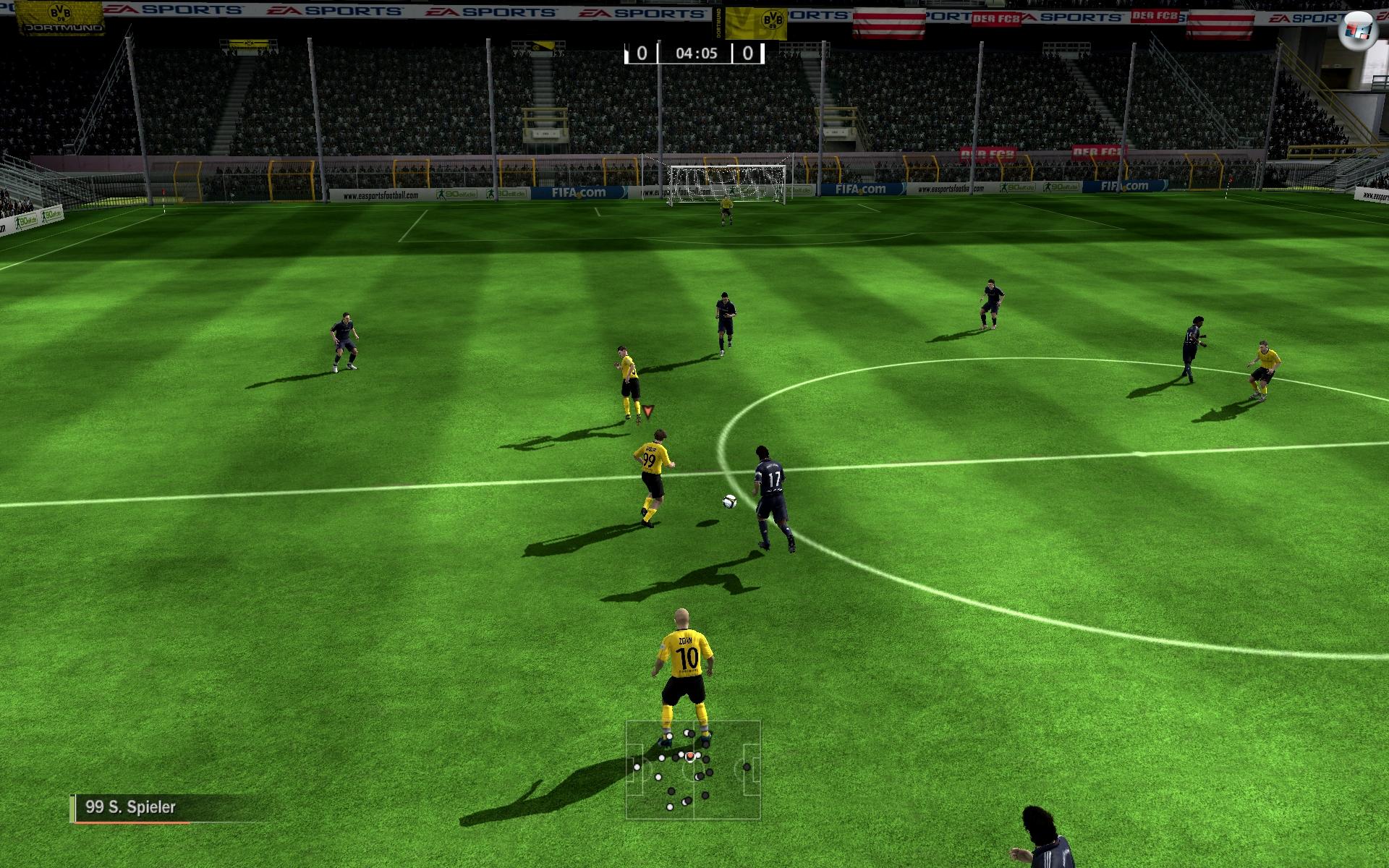 | Auf dem PC vermisst man in der Karriere die Laufwege-Anzeige sowie die Icons für Abseits, Pässe oder Torschuss. Dafür fängt die Kamera das Geschehen hier sogar etwas besser ein als auf Konsolen. (PC) |