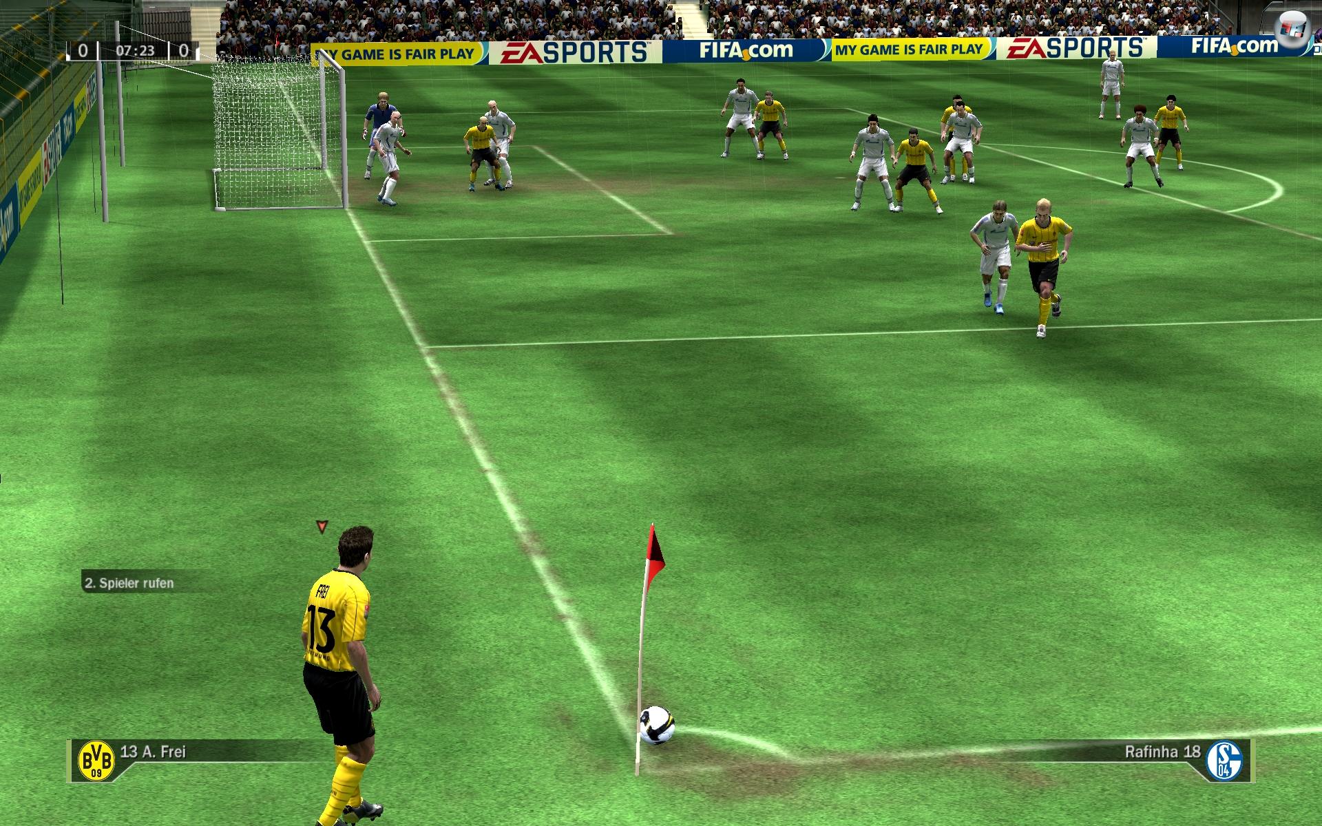 | Etwas seltsam am PC: Die Weite des Platzes schrumpft bei Ecken plötzlich zusammen – irgendwas stimmt da nicht mit der Perspektive. Auf 360 und PS3 wirkt das Tor viel weiter weg. (PC) |