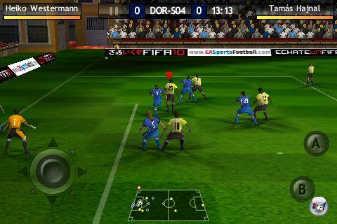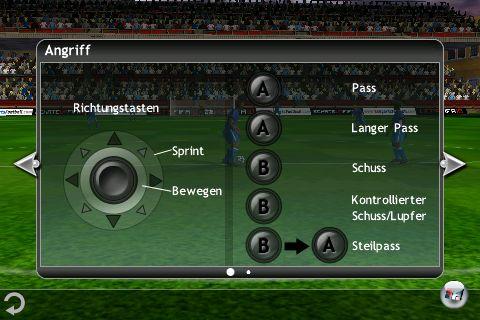 Die Steuerung der trägen und kaum individuellen Spieler gleicht aber gerade zu Beginn einem mechanischen Glücksspiel. Selbst wenn man sich wirklich zusammen reißt, die Empfindlichkeit in den Menüs etwas anpasst, auf eine andere der sechs Kameraperspektiven wechselt und sich so richtig konzentriert, plätschert nur so etwas Ähnliches wie ein Spielflüsschen vor sich hin. Aber nur ganz kurz. Und das ist viel zu zickig, als dass wirklich Spaß aufkommt, weil das offensive Laufverhalten der eigenen Leute katastrophal ist. Zumal die Defensive trotz möglicher Doppeldeckung einfach nicht effektiv genug funktioniert. Wer kam nur auf die Idee, dass man für eine Grätsche tatsächlich über die Knöpfe streichen muss? Das geht gar nicht! Wird es mit der optionalen Kipp-Steuerung besser? Nicht wirklich: Man kann den Spieler dann zwar über das Schwenken des iPhone etwas präziser lenken und per Sprintknopf beschleunigen, aber durch das Gewackel verliert man ihn natürlich auch mal aus dem Auge. Egal wie man es dreht und wendet: Hier gewinnt am Ende nur der Frust.