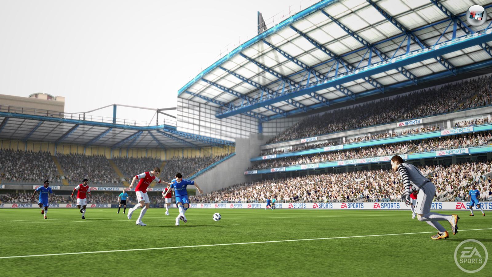 Aber wie immer gilt: Man kann die Kommentare abschalten und sich an den Fangesängen ergötzen, die auch in FIFA 11 einen Großteil der Atmosphäre ausmachen, wenn es im Derby zwischen Schalke und Dortmund um die Nummer 1 im Revier geht oder wenn das Publikum auch ohne Schlachtrufe bei Chancen in kollektives Raunen verfällt – Anlage aufdrehen und Spaß haben! Und wer es noch individueller mag, lädt erstmals eigene Songs oder Gesänge hoch. So kann man sich als HSV-Fan beim Einmarsch z.B. Lotto King Karl geben oder gerade aufgezeichnete Schlachtrufe der Nordkurve als Audiodatei importieren.