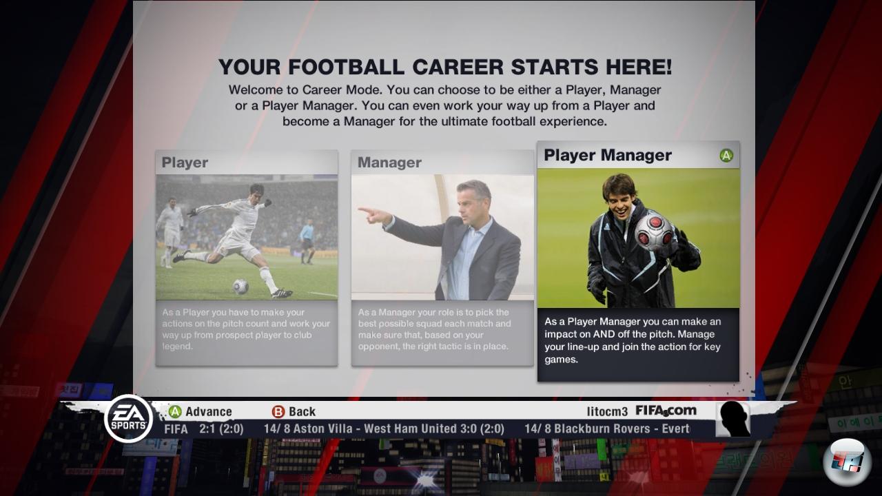 | In der Karriere kann man mit seinem erstellten Charakter sowohl als Spieler, Spielertrainer als auch Manager antreten. |