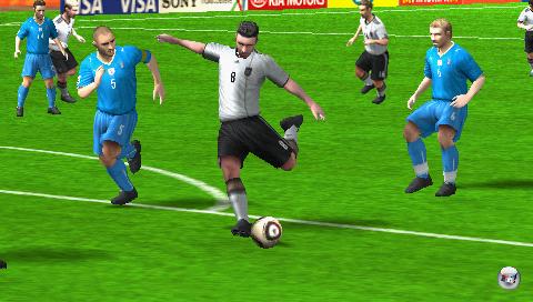 Es gab einmal eine Zeit, in der Konamis Pro Evolution Soccer der Konkurrenz aus dem Hause EA deutlich überlegen war. Die Gründe dafür werden einem sofort wieder bewusst, wenn man auf der PSP die Weltmeisterschaft in Südafrika in Angriff nimmt: Auch wenn der Verpackungstext eine komplett neue Schussmechanik verspricht, scheint sich in diesem Bereich seit FIFA 06 nicht besonders viel getan zu haben, denn die Bälle fühlen sich immer noch viel zu leicht an und donnern wie an einer Schnur gezogen in Richtung Tor. Zudem lässt sich das Leder nach Standards wie Ecken oder nach Flanken in den Strafraum oft viel zu leicht mit einem Volley oder Fallrückzieher im gegnerischen Kasten versenken. Dazu trägt auch die Vereinfachung bei, mit deren Hilfe man die Flugbahn anhand eines Schaubildes verändern kann. Generell geben die Keeper oft keine überzeugende Vorstellung und lassen zu viele Bälle durchgehen. Dass es auch auf der PSP besser geht, beweist Konami immer wieder mit den PES-Umsetzungen, die sich nicht nur sehr viel authentischer anfühlen, sondern auch mehr Abwechslung auf dem Platz zu bieten haben.