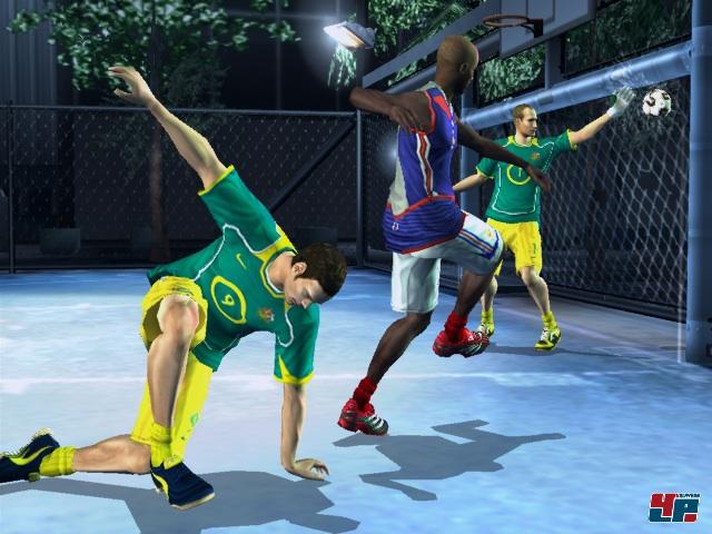 Die meiste Zeit werdet ihr jedoch im Absolute Street-Modus verbringen, dem Karrieremodus von Fifa Street 2. Hier bastelt ihr euch zunächst in einem umfangreichen Editor einen Ballkünstler und verteilt anschließend Talent Cents in den Bereichen Tempo, Schießen, Tricks, Abwehr und Power. Weitere Cents erhaltet ihr in den zahlreichen Veranstaltungen durch tolle Tricks und Siege, so dass ihr euren Fußballer nach und nach immer mehr aufwerten und neue Moves erlernen könnt. Habt ihr einen bestimmten Punkt in der Karriere erreicht, dürft ihr euch sogar als Kapitän einer ganzen Mannschaft beweisen und euch euer Traum-Team aufbauen. Gar nicht so einfach, wenn unzufriedene Spieler meckern, das Team verlassen und euch anschließend herausfordern. Aber ein echter Kapitän zeigt den Aufmüpfigen schon, wo der Hammer hängt… Habt ihr euch in der Szene einen Namen gemacht, tretet ihr gegen internationale Größen vom Schlag eines Ronaldinho, Zidane oder Helden vergangener Zeiten wie Franz Beckenbauer in Turnieren an. Insgesamt erwarten euch im Karrieremodus eine Vielzahl verschiedener Wettbewerbe, bei denen die Ziele vorgegeben sind. Mal reichen drei Tore zum Sieg, ein anderes Mal müsst ihr durch Tricks schneller einen Punktestand erreichen als das andere Team oder es zählen lediglich Treffer während eines Gamebreakers. Nach und nach werden weitere Herausforderungen freigeschaltet, genau wie neue Plätze und Outfits von der stinkigen Socke bis zum stylischen Hut.Trick-Künstler