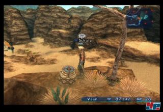 Angenehm ist auch, dass die einzelnen Spielabschnitte nicht mehr so begrenzt und linear wie in FFX sind, sondern ausgedehnte Wiesen, weitläufige Strände und gewaltige Wüsten zum Erkunden einladen. Zudem erscheint in der Nähe sämtlicher Objekte oder Personen, mit denen ihr interagieren könnt, ein entsprechendes Symbol, was lästige Klickorgien, um ja kein verstecktes Kleinod zu verpassen, erübrigt. Schatzsucher dürften aber dennoch enttäuscht sein, da selbst die entlegensten Urnen nur zufällig generierte Beute enthalten. Wenn man nach unzähligen Kämpfen in einer auf der Karte nicht verzeichneten Geheimpassage nur mit mickrigen 4 Gil abgespeist wird, während man kurz zuvor direkt am Wegrand über eine formidable Waffe gestolpert ist, kann irgendwas nicht stimmen…