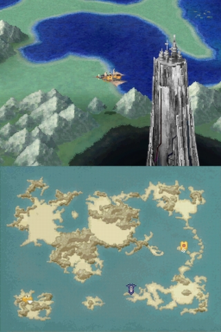 Schon der Vorgänger war eines der bestaussehendsten DS-Spiele, Final Fantasy 4 legt in dieser Hinsicht noch eine Kohle drauf: Die gesamte Welt besteht aus schön texturierten 3D-Objekten, alle Figuren (große Köpfe, noch größere Augen – offensichtlich ein Japano-Rollenspiel) sind toll designt und gut animiert. Okay, vielleicht etwas eckig, aber diesen Malus machen die fabelhaften Effekte in den 3D-Kämpfen sowie die großartigen Bossmonster locker wieder wett. Die beiden Bildschirme werden optimal genutzt; oben steigt die Action, unten findet sich je nach Situation etwas anderes: Innerhalb von Städten gibt’s eine Komplettübersicht inkl. aller wichtiger Stationen wie Magie- oder Waffengeschäfte. Auf der Oberwelt, die ihrerseits detailliert in alle Richtungen scrollt, wird auf dem zweiten Screen nach und nach ebenfalls eine Übersicht aufgedeckt, genau wie innerhalb von Dungeons. Hier kommt allerdings noch ein Bonus für Forschernaturen dazu: Schafft ihr es, eine Höhle zu 100% zu erkunden (eine rechts unten eingeblendete Anzeige hält euch über den Fortschritt auf dem Laufenden), gibt es eine Belohnung in Form von einem Batzen Items.