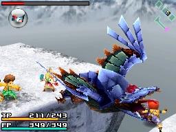 Ihr seht schon: Es stecken liebenswerte Charaktere hinter den knuddeligen Pixel-Heroen. Aber auch Widersacher wie der wirbelnde Fuchs und die kugelrunde Fledermaus sehen derart possierlich aus, dass man ihnen eigentlich gar nichts zu leide tun möchte. Nun aber ans Eingemachte: Sobald euch ein paar Sequenzen in Spielgrafik in die Vorgeschichte eingeweiht haben, geht es in düsteren Dungeons und auf verschneiten Berggipfeln auf Jagd nach wilden Kreaturen. Leider erinnert der eckige Aufbau der etwas karg gestalteten Landschaften an einen einfachen Level-Editor. Ihr betrachtet die Kulissen wie im Klassiker Landstalker aus der Iso-Perspektive. Die Kampfsteuerung ist ebenso simpel wie eingängig: Ein Knopf ist zum Springen da, mit einem zweiten gebt ihr den Monstern Saures. Ihr könnt ihnen Kombos verpassen, das Schwert aus der Luft gen Boden rammen, ihnen auf dem Kopf herumtrampeln und sie an die Wand schmettern. Oder aber ihr hängt euch an eine Fledermaus und bearbeitet sie von unten.