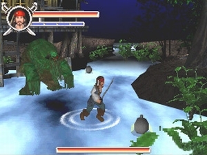 selbst denen erwehrt ihr euch am effektivsten mit dem Säbel. Viel haben die untoten Piraten, Sumpfmonster oder englischen Gardisten leider nicht auf dem Kasten: Sie tauchen meist unverhofft und in Doppelpacks auf, laufen langsam auf euch zu, schwingen gelegentlich die Klinge oder spielen am Abzug ihrer Waffen. Seht ihr den Angriff kommen, könnt ihr blocken. Ansonsten stehen euch verschiedene Attacken samt Kombos zur Verfügung.