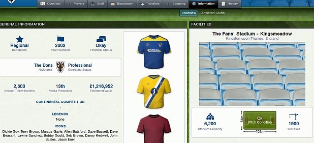 Gleich geblieben ist die nach wie vor spröde Präsentation. Auch wenn die Navigation überarbeitet wurde, muss man anfänglich zu lange wühlen oder sich wild durch die Gegend klicken, bis man in den trockenen Tabellen und Bildschirm füllenden Statistiken schließlich das findet, was man sucht. Doch für mich als halbwegs Fußballverrückten dauert es nicht lange, bis Bilder in meinem Kopf entstehen, Emotionen aufwallen und die Namen und Zahlenkolonnen zu Persönlichkeiten werden.