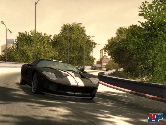 an dem ihr auch so ziemlich alles nach euren Wünschen konfigurieren und einstellen könnt. Und jetzt stellt euch ein Autohaus vor, in dem ihr lediglich ein einziges Sparmodell bekommt, das zwar günstig ist, aber keinerlei Extras bietet: genau das ist Ford Street Racing! Ihr habt weder Einfluss auf die mit der fetten 3D-Streckenkarte etwas überladene Anzeige noch dürft ihr an den Boliden in irgendeiner Form herumschrauben. Ihr wollt Musikbegleitung während der Rennen? Wozu? Die eher mageren Motorengeräusche als Klangkulisse reichen für die Entwickler anscheinend völlig aus! Diese werden bei Unterführungen allerdings dermaßen krass und plötzlich lauter, dass man fast schon einen Schreck bekommt. In der Innenansicht habt ihr dagegen eine ungewöhnliche Ruhe, denn hier hört ihr von dem eigenen Fahrzeug so gut wie nichts – ebenfalls ein Patent, für das sich so mancher Ingenieur interessieren dürfte. Zumindest habt ihr dort aber alles gut im Blick, denn die Außenansicht hat bei Steigungen mit einigen Übersichtsproblemen zu kämpfen, die man mit einer automatischen Verlagerung der Kamera leicht hätte korrigieren können. Leider stehen lediglich diese beiden Perspektiven zur Verfügung und wer sich nach den Rennen die Auseinandersetzungen in einem Replay ansehen möchte, schaut leider in die Röhre. Zwischenstände bzw. Abstände in Metern gibt es zudem lediglich in Duell-Rennen. Ansonsten müsst ihr euren Vorsprung bzw. den eurer Gegner anhand der Streckenkarte abschätzen. Zwar bietet neben der Xbox-Fassung selbst die PC-Version einen Splitscreen-Modus für zwei Spieler, doch drehen die Fords lediglich offline ihre Runden und ermöglichen leider keine Auseinandersetzungen über das Internet bzw. Xbox Live oder LAN. Um den Rennen zusätzliche Würze zu verleihen, lassen sich jedoch bis zu sieben KI-Fahrer hinzuschalten.Aggressive KI