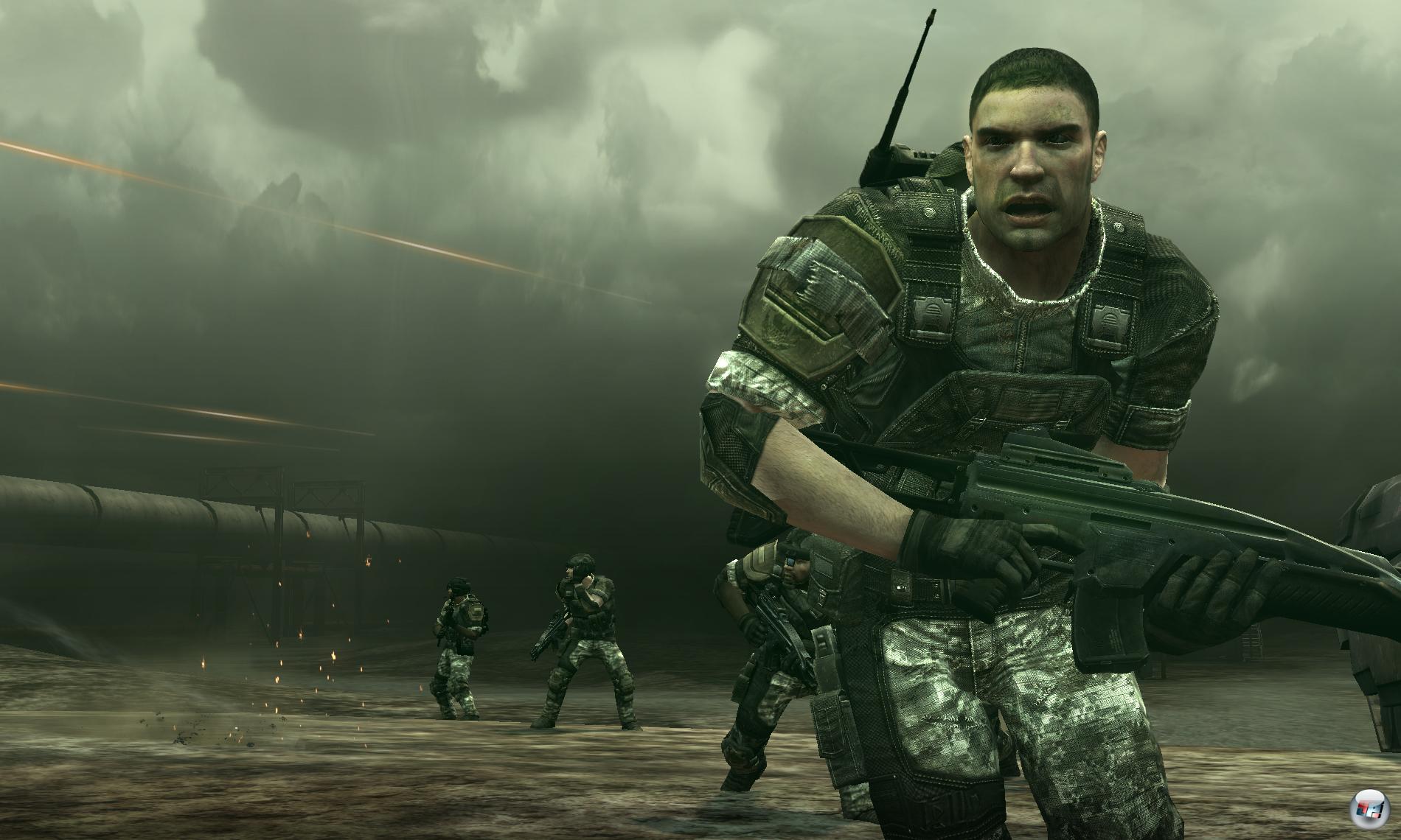 Fakt ist, dass sich die Ölreserven der Erde langsam aber sicher aufbrauchen und der wichtige Rohstoff langsam knapp wird. Prognosen gehen davon aus, dass in etwa 20 bis 40 Jahren der Bedarf nicht mehr gedeckt werden kann. Schon seit Anfang der Neunziger Jahre verbrauchen wir mehr Öl als entdeckt wird. Wer heute an die Tankstelle fährt und einen Blick auf die Anzeigentafel wirft, bekommt einen Vorgeschmack der Folgen: Der Ölpreis steigt und steigt und steigt… Geht es nach THQ und den Kaos Studios sieht unsere Zukunft deshalb alles andere als rosig aus: Wochenlange Stromausfälle stehen an der Tagesordnung, in den Straßen vieler Städte herrscht Anarchie und an den letzten Ölquellen steht die Westkoalition mit Truppen aus den USA und der EU der Rotstern-Allianz aus Russland und China gegenüber. In der Kampagne kommt es, wie es kommen muss: In Turkmenistan fallen die Rotsterne den westlichen Soldaten in den Rücken und ballern so den Startschuss für den dritten Weltkrieg aus ihren Magazinen. Ihr seid als Mitglied der Spezialeinheit Stray Dogs in der Krisenregion unterwegs und schlagt euch in insgesamt acht Missionen von den Ölfeldern in der Wüste bis ins Zentrum von Moskau vor.