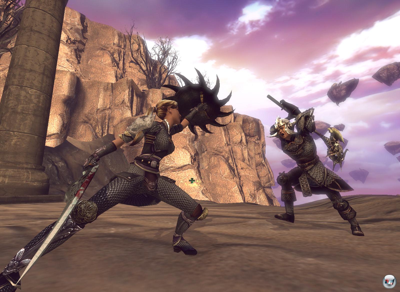 Da als Basis die UT3-Engine für Fury bereit stand, darf man getrost einige Erwartungen an die Präsentation stellen. Und diese werden auch erfüllt, aber leider nur teilweise: Die Städte sind schön konstruiert und atmosphärisch gelungen, aber eigentlich nur Abstellplatz für Händler, Trainer und Treffpunkte mit anderen Spielern. Wer es schafft, sich während der Kämpfe einmal die Arenen anzusehen, der wird feststellen, dass diese auch sehr ansehnlich sind – leider bleibt das im hektischen Gemetzel und hinter den aufsteigenden Zahlen für Schaden und Heilung meist verborgen. Bei den Charakteren allerdings gibt es wieder Abstriche zu machen: Diese wirken in den Bewegungen steif und oft hat man weniger das Gefühl zu laufen als zu gleiten. Wenn schon relativ wenig Monstertypen geboten werden, dann sollte man wenigstens bei den Animationen nicht sparen.