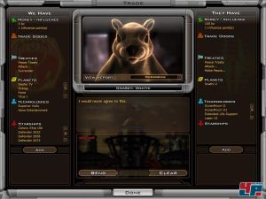 Leider ist der Planet der Torianer, der sich im selben Sonnensystem befindet, der einzige, der in Reichweite meiner noch primitiven Sensoren liegt. Um den letzten Widerstand der Heimatflotte dieser Ökoweichlinge zu brechen, lasse ich den Planeten bombardieren, was wie alle Kämpfe automatisch abläuft, ohne dass ich groß eingreifen kann. Danach landen meine Bodentruppen, um die Feinde zu zerschmettern. Ich kann zwischen mehreren Optionen der Besetzung wählen: Normal, verheerender Einsatz von Massetreibern oder doch lieber ein zünftiger Gasangriff, der allerdings die Oberfläche verseucht. Ich entscheide mich für den elektronischen Krieg, der zwar teuer ist, aber gleichzeitig auch Teile der Opposition auf meine Seite bringt. Mit dieser Unterstützung fegen meine kampfstarken Verbände die Pazifisten weg, so dass die Welt mein ist.
