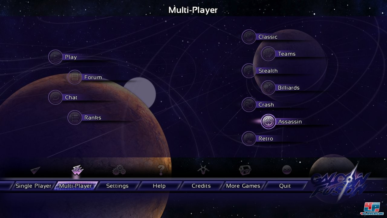 Selbst wenn man seine eigene Bestmarke nicht mehr knacken kann oder will, wartet noch das Internet mit rasanten Gefechten. Und hier dreht Galcon Fusion richtig auf: Online kann man sich kleine Duelle liefern oder mit bis zu zwölf Leuten um Planeten kämpfen, entweder in Teams oder anarchisch gegen alle und jeden. Dann kommt es zwar zu einer wahren Farb- und Jägerexplosion auf dem Bildschirm, aber das macht aufgrund der knackigen Spielzeit und deftiger Flüche immer wieder Laune. Wer ehrgeiziger ist, kann sich auch in Ranglisten hochkämpfen; auch Spiele gegen PC-, Mac- und Linux-Strategen sind möglich.