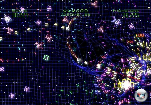 Auch der aktuelle Teil der Geometry Wars-Serie ist kein Spiel, bei dem man durch einen spontanen Juckreiz, eine nervige Stubenfliege oder eine Telefonanruf gestört werden möchte. Schon ein Druck auf den Pause-Knopf kann das Ende für den mühsam aufgebauten Multiplikator und somit für euren Rekordversuch bedeuten. Und um Rekorde geht es nach wie vor: Um den Käufern des ersten im Laden angebotenen Geometry Wars etwas für ihr Geld zu bieten, hat Entwickler Kuju eine Vielzahl an Galaxien implementiert. Jede davon umfasst eine Hand voll Planeten, auf denen ihr um Highscores kämpft.