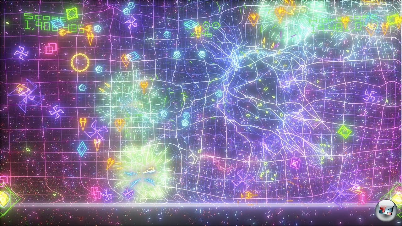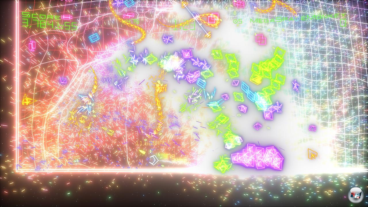Hängt euch die Mathematik langsam zum Halse raus? Nein? Müsst ihr auch eurem besten Kumpel beweisen, was ihr über die Geometrie gelernt habt? Dann drückt ihm ein Gamepad in die Hand, holt am noch zwei weitere Nachhilfe-Bedürftige an die Konsole und ballert entweder miteinander oder gegeneinander durch jeden der sechs Modi! Zugegeben, es gibt spannendere Mehrspieler-Ideen als gemeinsam Punkte zu sammeln oder sich Geoms und Abschüsse vor der Nase wegzuschnappen. Als kurzfristige Ablenkung ist das gemeinschaftliche Gerangel aber durchaus geeignet, der ärgerliche Knackpunkt liegt woanders. Denn auch Retro Evolved 2 erlaubt keine Online-Partien. Mag sein, dass eine moderne Internetleitung Schwierigkeiten hat, die Daten schnell genug zu transportieren. Trotzdem ist es schade, dass Bizarre nicht irgendeinen Weg gefunden hat, um eine Adrenalinspritze dieser Bauart endlich auch online salonfähig zu machen. Dem Spaß tut das freilich wenig Abbruch – es subtrahiert nur einen winzigen Nachkommawert von einem großen Ganzen.