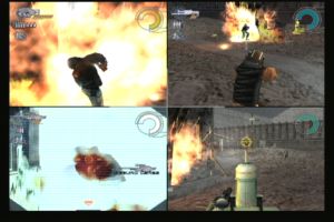 aber trotz sehr unterschiedlicher Charaktere und Waffensysteme will einfach kein richtiger Spielspaß aufkommen.Natürlich liegt das auch daran, dass ein solcher Spielmodus via Splitscreen nur leidlich spannend ist, da man die Position jedes Gegners am geteilten Bildschirm jederzeit ablesen kann. Doch statt diesem Umstand mit kleinen kompakten Arealen Rechnung zu tragen, wo nicht viel Zeit für Seitenblicke auf Gegnerpositionen bleibt, verbringt man in den weitläufig verschachtelten Arenen deutlich mehr Zeit mit der Gegnersuche als mit eigentlichem Kämpfen. Vor allem zu zweit muss man fast schon Treffpunkte ausmachen, um sich überhaupt über den Weg zu laufen…