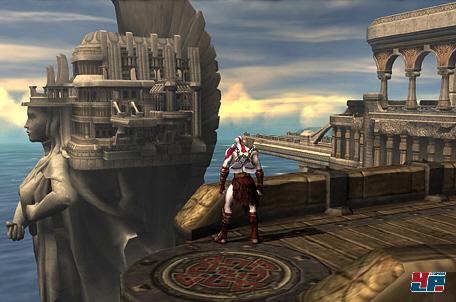 Die Welt von God of War 2 ist antik, griechisch, groß, völlig linear und ein Ganzes: Hier gibt es keine abgeschlossenen Levels, stattdessen geht jedes Szenario logisch und fließend ins nächste über. Und jedes Mal möchte man weinen vor Dankbarkeit, dass man so etwas auf der mittlerweile nach einem Pfleger rufenden PS2 noch zu sehen bekommt: Allein der Lauf vom Garten der Lahkesis zu den Rössern der Zeit ist schlicht prächtig. Und zeigt ganz nebenbei, dass Sonys Santa Monica-Abteilung die PS2 besser im Griff hat als jeder andere Entwickler. Irre! Der Palast der Moiren (der Schwestern des Schicksals) ist ein wahrer Augenöffner. Die Höhle des Atlas ist ein lebender, pulsierender Lava-Albtraum.