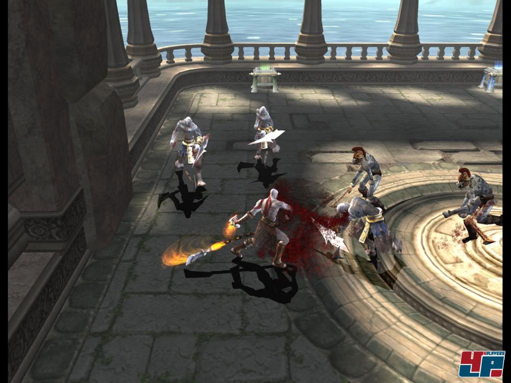 gesehene Effekte in vollem Lauf ab, die man in der Qualität eigentlich auf der 360 oder PS3, aber nicht auf der PS2 erwartet! Nur die niedrige Auflösung erinnert Nutzer großer Fernseher daran, dass sie an einer sieben Jahre alten Konsole sitzen, außerdem leidet God of War 2 stärker als der Vorgänger an gelegentlichen Ruckel- und Tearing-Gebrechen. Darüber hinaus müssen Spieler mit flimmernden und ziemlich niedrig aufgelösten Texturen leben, auch ist die Kameraperspektive nicht immer optimal – und lässt sich wie gewohnt nicht manuell nachjustieren. Aber bitte: Wen juckt das angesichts Qualität und Quantität der grafischen Pracht, die unablässig auf den Spieler herniederprasselt? Subtiler Zeitlupeneinsatz innerhalb der Kombos, brillant inszenierte Quicktime-Reactions, sanfte Überblendeffekte und exzellente Renderfilme (von denen es deutlich weniger als im Vorgänger gibt), die sich harmonisch in die Echtzeit-Sequenzen einbetten, verwöhnen die Augen aller Actionfreunde!