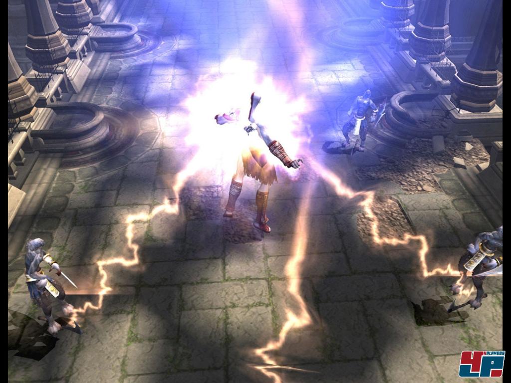 Wer just im Kino die Comicverfilmung »300« gesehen hat, der weiß um das Szenario, das ihn bei God of War 2 erwartet: Harter Spartaner gegen den Rest der Welt – in diesem Fall die Oberwelt, denn neben vielen Figuren aus griechischen Sagen trifft Kratos auch auf einen Großteil der Olymp-WG, auf mehrere Titanen, klaut Ikarus die Flügel und befreit Prometheus von seinen von Zeus verordneten Qualen. Diese Gestalten verleihen Kratos teilweise neue Fertigkeiten: Mit Jasons Vlies kann er, etwas Timing vorausgesetzt, feindliche Geschosse reflektieren, mit Ikarus‘ Flügeln darf er kurzzeitig von Plattform zu Plattform flattern. Und natürlich gibt es jede Menge Magie, mit der man den Gegnern durchaus wörtlich genommen ordentlich einheizen darf – wobei ein Großteil davon schon aus dem Vorgänger bekannt ist und hier nur in neuer Hülle auftritt: Eine Art Jedi-Blitz, der gleich mehrere Feinde angreift, ein Elementar-Bogen, ein Rage-Modus oder der Kopf der Euryale (der Schwester der Medusa), der genau das Gleiche macht wie die Birne der Vorgängerin – Gegner versteinern.