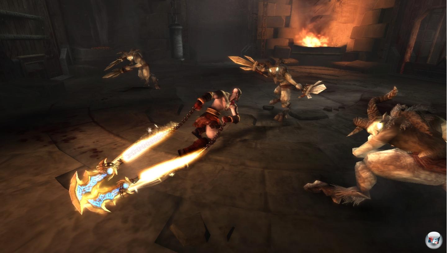 | Erneut sind Athenes Klingen der beste Freund, wenn sich Kratos Minotauren und andere Kreaturen in den Weg stellen. |