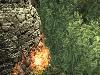 Da lodern z.B. Feuer bei strömendem Regen in einem massiven Felsen, obwohl da weder ein Lager noch ein Kamin ist – vielleicht ein Elbenzauber? Wer weiß. Wie bei Harry Potter schweben manchmal Fässer und Menschen in der Luft. In diesem Myrtana ticken die Uhren eben anders. Und auch die Menschen. Böse Zauber lassen sie gegen unsichtbare Feinde kämpfen oder ihre Sprache in einem Dialog wechseln! Ja, erst ist die helle, dann die tiefe Stimme zu hören. Böse Magie? Manchmal werden sie auch plötzlich sprachlos. Irgendwie habe ich das Gefühl, dass mir die Spieldesigner damit etwas sagen wollten –